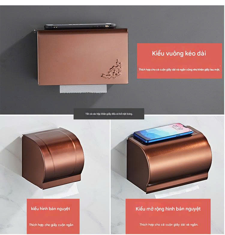 Bộ 5 Món Phụ Kiện Nhà Tắm Màu Hồng Đồng Cao Cấp - Giá Treo Khăn, Kệ Góc, Hộp Giấy & Móc 003