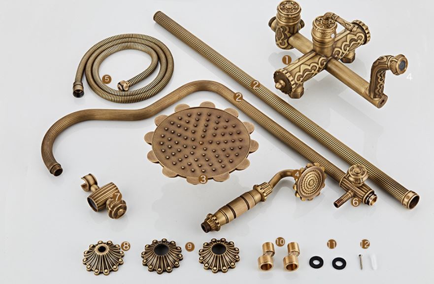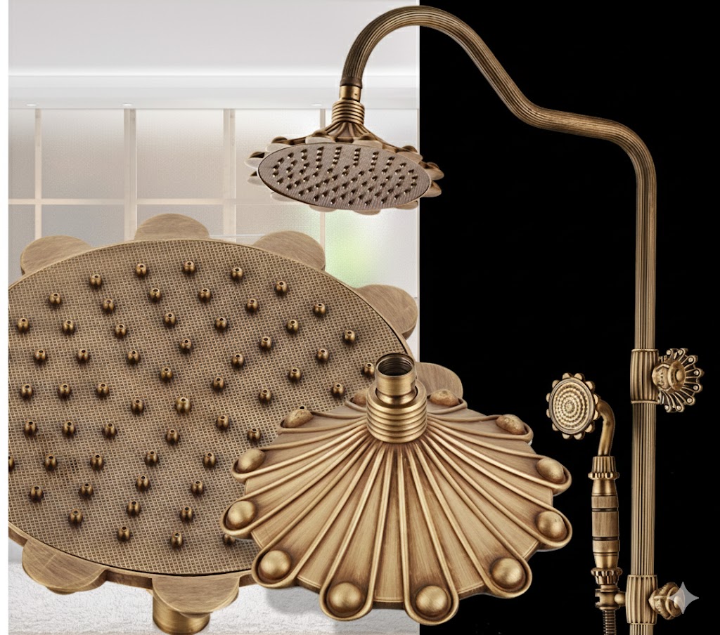Giá cũ:Bộ Vòi Sen Cao Cấp Mã 003 - Thiết Kế Hoa Sen Chạm Khắc Cổ Điển, Chất Liệu Đồng Nguyên Khối Đa Chức Năng