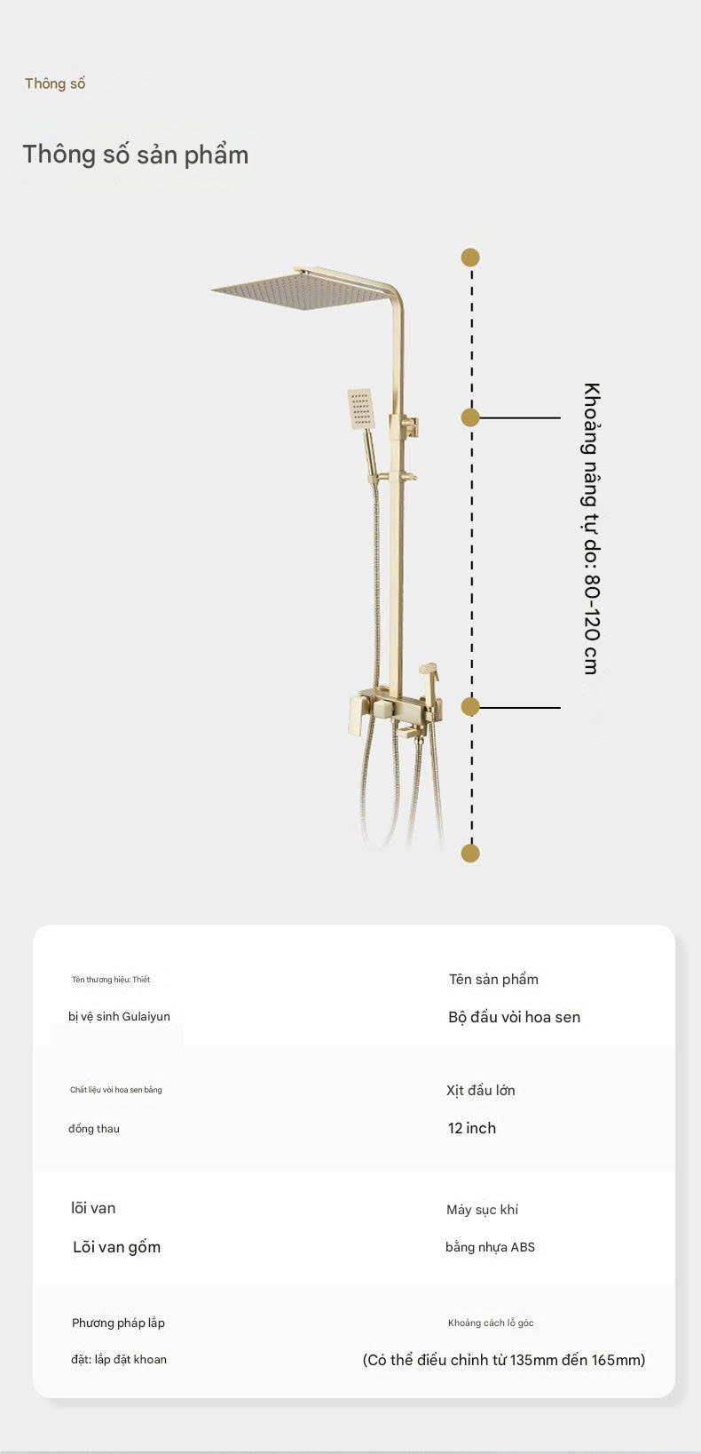 | Chiều cao điều chỉnh (cần sen) | 80 - 120 cm |