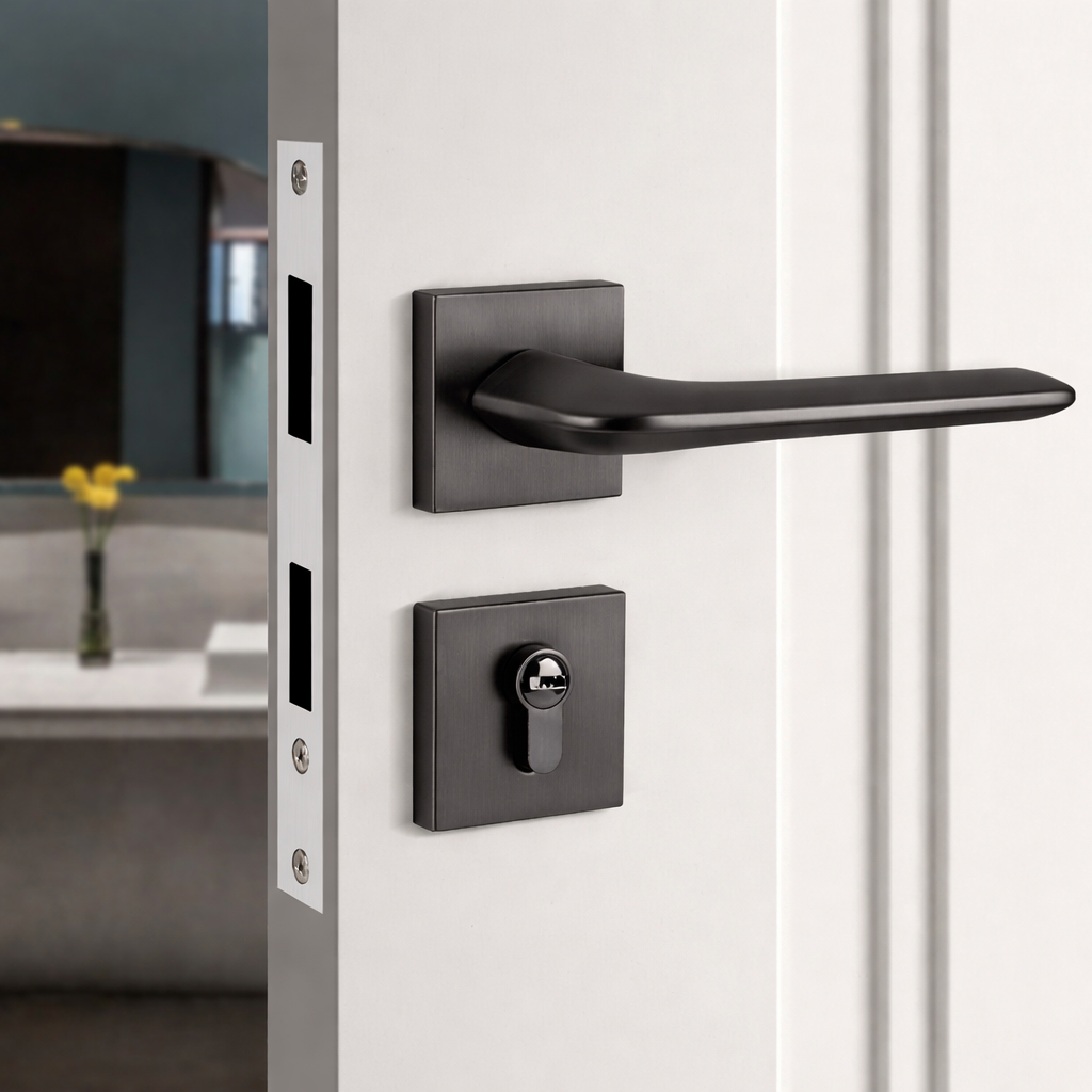 Khóa cửa tay gạt vuông hiện đại – Chất liệu đồng thau 053