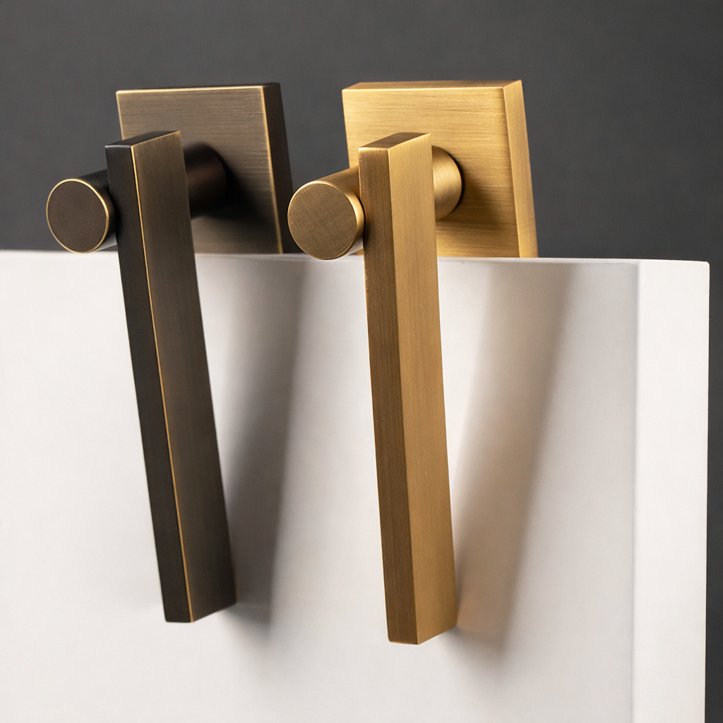 Khóa cửa tay gạt vuông mã 057 được chế tác từ đồng thau cao cấp, mang đến vẻ đẹp sang trọng và độ bền vượt trội theo thời gian. Thiết kế tay gạt vuông mạnh mẽ kết hợp tông vàng xước tinh tế giúp không gian trở nên hiện đại, đẳng cấp và nổi bật.